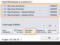 Може да проверите и информацията за броячите за всяка добавка. Натиснете <Проверка на AddOn брояча> на екрана в стъпка 2. Ако натиснете <Инф. за устр./Друго>