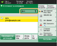 За да изберете дестинация от екрана <Съкратено набиране> след сканиране, задайте <Съкратено набиране> за <Екран по подразбиране>. Необходимата работа за изпращане на сканирани документи до една и съща дестинация може да се намали. <Екран по подразбиране>