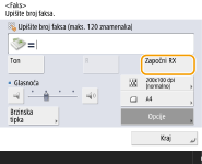 (Početni zaslon) <Faks> <Slušalica odložena> <Započni RX> da biste primili faksove.