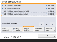 Možete provjeriti i informacije brojača za svaki dodatak. Pritisnite <Provj. AddOn brojača> na zaslonu u 2. koraku. Ako pritisnete <Podaci uređ./ostalo>