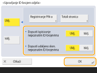 U slučaju odabira opcije <Isključeno>, prilikom izvođenja odgovarajućeg zadatka morate unijeti ID-broj odjela.