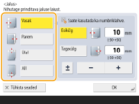 1-Sided 2-Sided: Määrake äärise režiim nii esi- kui ka tagakülje jaoks.2-poolne 2-poolne: Määrake äärise režiim nii esi- kui ka tagakülje jaoks.2-poolne 1-poolne: Määrake äärise režiim nii taga- kui ka esikülje jaoks. |