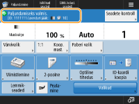 Kuvab seadeoleku, nagu paljundusmastaap, paberi suurus ja koopiate arv. Õigesti kopeerimiseks kinnitage kindlasti seaded. Seadete muutmiseks vajutage näidikujaotise all olevat nuppu.