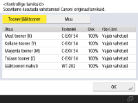 Järelejäänud kulutarvikute hulka saate kontrollida rakenduse Remote UI (Kaugkasutajaliides) abil. Masina oleku kontrollimine