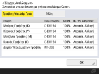 (ΈλεγχοςΚατάστ), εμφανίζεται η οθόνη Έλεγχος Κατάστασης, η οποία σας επιτρέπει να ελέγξετε το επίπεδο του γραφίτη ή άλλες ενδείξεις κατάστασης.