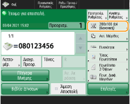 Αποστολή με τις πληροφορίες αποστολέαΜπορείτε να πραγματοποιείτε αποστολή με τις πληροφορίες και τον αριθμό φαξ του αποστολέα. <Ταυτότητα Τερματικού ΑΠ>