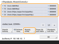 <Δοκιμή Επικοινωνίας> για να ελέγξετε την επικοινωνία με τον απομακρυσμένο διακομιστή παρακολούθησης. Όταν εκτελείται αυτή η λειτουργία, αποστέλλονται περιοδικά πληροφορίες από τη συσκευή στον απομακρυσμένο διακομιστή παρακολούθησης. Για να χρησιμοποιήσετε αυτήν τη λειτουργία, είναι απαραίτητο να ενεργοποιήσετε την επικοινωνία μεταξύ της συσκευής και του διακομιστή που παρέχει την υπηρεσία.Μπορείτε να εκτυπώσετε μία λίστα που εμφανίζει τον αριθμό των σελίδων που χρησιμοποιήθηκαν για την αντιγραφή, εκτύπωση, σάρωση και αποστολή φαξ.