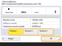 Visszahívhatja a korábban használt másolási beállításokat. A másolás megkezdése előtt megváltoztathatja a visszahívott beállítások részleteit.