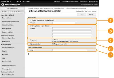 Az üzenet megjelenítésének megszüntetéseTörölje az [Állapot mutatásának engedélyezése], [Előugró ablak engedélyezése] és [Távvezérlés, RUI] lehetőségekhez tartozó jelölőnégyzetek bejelölését. Ha az üzenet tartalmát is törölni szeretné, a [Üzenet] szövegmezőkbe beírt szöveget is távolítsa el.