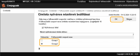 Válassza ki azt a csoportot, amelyben meg akarja osztani a címlistát, és kattintson az [OK] lehetőségre.