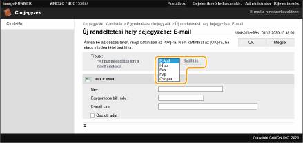 Kattintson az [Új rendeltetési hely bejegyzése] vagy a [Új csoport bejegyzése] lehetőségre.