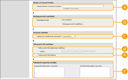 Az általános felhasználók számára rendelkezésre álló műveletek mellett engedélyezi az olyan alapvető funkciók beállításainak megváltoztatását, mint a másolás, nyomtatás, küldés és fogadás.