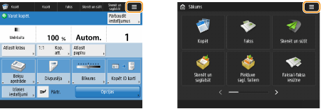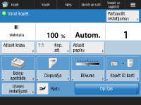 Varat mainīt ekrānu parādīšanas iestatījumus, piemēram, noteikt, kurš ekrāns tiek parādīts uzreiz pēc iekārtas ieslēgšanas, un vai tiek parādīts ziņojums par atlikušo papīra un tonera daudzumu. <Rādīt iestatījumus>