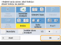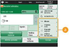 Pamatfunkciju ekrānā novietoto iestatījumu vienumu skaits un parādāmā atrašanās vieta atšķiras atkarībā no funkcijām.