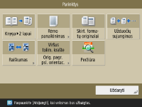Kai kurie čia aprašyti režimai yra susiję su <Kopija> arba <Skenavimas ir siuntimas> funkcijos režimais.