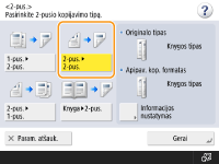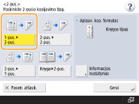 Pasirinkus dvipusį kopijavimą, kai kurios funkcijos, tokios kaip popieriaus formatas ir tipas, yra ribojamos. Daugiau informacijos ieškokite skyriuje Aparatinės įrangos techniniai duomenys.