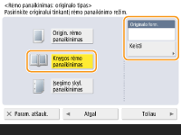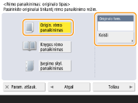 Jei <Originalo form.> rodomas formatas skiriasi nuo jūsų pasirinkto originalo formato, paspauskite <Keisti>, kad pasirinktumėte formatą. Galima nuskaityti tik originalo formatus, rodomus jutikliniame ekrane.