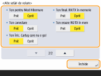 Chiar dacă tonul de intrare este setat la <Oprit>, tonul de intrare va fi emis când soseşte un fax în timpul modului de hibernare, dacă consumul de energie din timpul modului de hibernare este setat la „mic”. <Utilizare energie în modul hibernare>