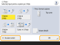 se află în partea din dreapta jos pentru a afişa ecranul de setări. După efectuarea setării, starea setării se afişează în secţiunea de sus a butonului, iar culoarea secţiunii de jos se schimbă.