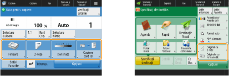Pentru a simplifica utilizarea ecranului <Acasă> şi a ecranului Caracteristici de bază pentru fiecare funcţie, puteţi personaliza ecranul rearanjând butoanele sau creând butoane de comenzi rapide. Mai mult, puteţi lucra mai eficient înregistrând setările deja specificate pentru funcţiile utilizate frecvent în <Personal>/<Partajat> sau în Setări personale pentru a personaliza mediul de operare conform propriilor preferinţe.