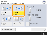 Puteţi să copiaţi originale cu o faţă pe ambele feţe ale hârtiei. De asemenea, puteţi copia un original faţă-verso pe ambele feţe ale hârtiei sau pe două coli separate.