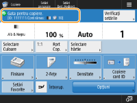 Afişează stările setărilor, precum raportul de copiere, dimensiunea hârtiei şi numărul de copii. Aveţi grijă să confirmaţi setările pentru a copia în mod corespunzător. Pentru a modifica setările, apăsaţi butonul de sub secţiunea de afişare.