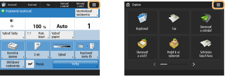 zobrazeného na obrazovke <Domov> a obrazovke základných funkcií môžete prispôsobiť obrazovku, napríklad zmeniť usporiadanie tlačidiel alebo vytvoriť klávesovú skratku. Prispôsobenie displeja dotykového panela