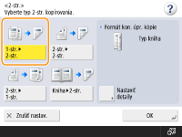 Keď sa zobrazuje obrazovka výberu veľkosti origináluAk je položka <Vybrať papier> nastavená na možnosť <Auto>, môže sa zobraziť obrazovka výberu veľkosti originálu. Zobrazuje sa, pretože v prípade vloženia priehľadných dokumentov, originálov s mimoriadne tmavou základnou farbou alebo originálov v malom formáte, nie je možné overiť originál a papier nie je možné zvoliť automaticky. Vyberte formát originálu alebo formát, ktorý je mu najbližšie.