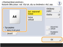 Skontrolujte formát a typ papiera a stlačte tlačidlo <OK>.