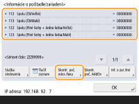 Taktiež môžete skontrolovať informácie počítadla, ktoré sa týkajú každého doplnku. Na obrazovke v kroku 2 stlačte tlačidlo <Skontr. poč. AddOn>. Ak na rovnakej obrazovke stlačíte tlačidlo <Inf. o zar./Iné>