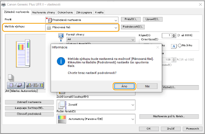 Môžete nastaviť čas začatia tlače, čo je užitočné v prípade tlače veľkého množstva dokumentov v noci a pod.