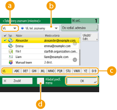 môžete zobraziť e-mail, súborový server, resp. skupinové miesta určenia.