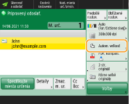 Ak chcete po skenovaní vybrať miesto určenia na obrazovke <Tlač. na jeden dotyk>, pod položkou <Implicitné okno> nastavte možnosť <Tlač. na jeden dotyk>. Činnosť potrebnú na odoslanie naskenovaných dokumentov do toho istého miesta určenia možno zredukovať. <Implicitné okno>