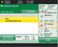 Zašifrovaný súbor PDF sa vyvolá a odošle z obľúbených nastavení.