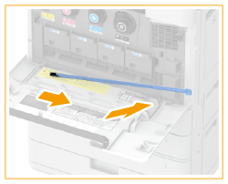 Plaka camını, besleyiciyi ve ana üniteyi temizledikten sonra bile beyaz çizgiler veya diğer baskı kusurları oluşuyorsa, toz geçirmez cam kirli olabilir. Bu durumda toz geçirmez camı temizlemek için aşağıdaki yöntemi takip edin.