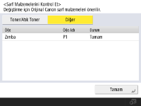 Sarf malzemelerinin ayrıntılı durumunu kontrol edin.