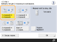 Можна копіювати 1-сторонні оригінали на обох сторонах аркуша. Можна також копіювати 2-сторонній оригінал на обох сторонах аркуша або на двох окремих аркушах паперу.