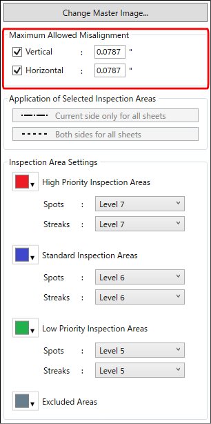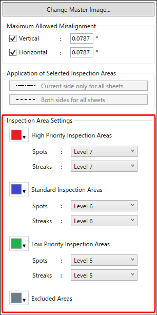 Only levels lower than [Standard Inspection Areas] can be specified in [Low Priority Inspection Areas]. For example, if [Standard Inspection Areas] is set to [Level 6], then the range of inspection levels that can be specified in [Low Priority Inspection Areas] is [Level 5] to [Level 1].