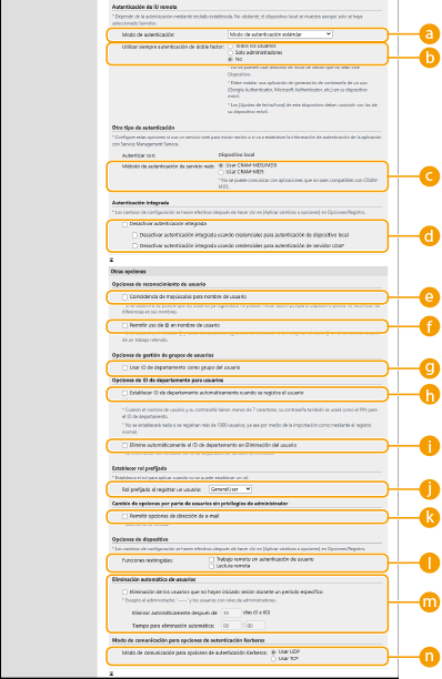 Dispositivo de autenticación). Tenga en cuenta que hay que configurar los dispositivos de autenticación antes de configurar las opciones siguientes.