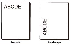 Orientation refers to the direction of printing. The printer function can print using two different paper orientations: portrait and landscape. With portrait orientation, text is printed across the width of the paper (short edge), and with landscape orientation, text is printed across the length of the paper (long edge).