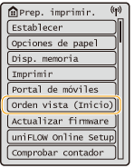 Puede cambiar las opciones de visualización en pantalla, como por ejemplo la pantalla que aparece justo después de encender el equipo, y si aparece el mensaje de papel y tóner restantes. <Opciones de visualización> |