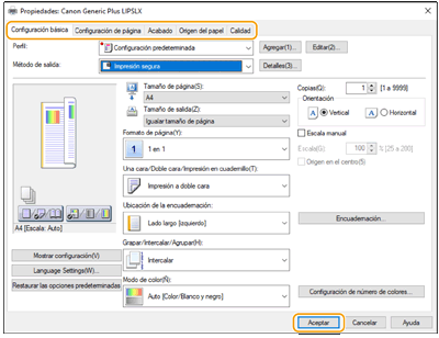 Especifique las opciones de impresión según sea necesario y haga clic en [Aceptar].