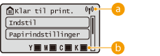 Tonerniveauerne for tonerpatronerne vises. De vises ikke ved betjening af skærmen <Hjem>.