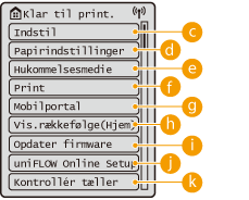 <Funktionsindstillinger>, <Præferencer> og mange andre maskinindstillinger begynder fra denne knap.