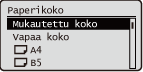 Valitse paperikoko kohdassa <Paperikoko>.