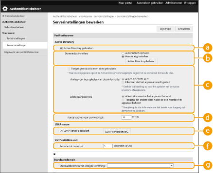 ![]() | Määrittääksesi Active Directoryn tai LDAP-palvelimen lisä-autentikointivälineeksi, sinun on rekisteröitävä autentikoinnissa käytettävän palvelimen tiedot. Suorita yhteystesti tarvittaessa. |