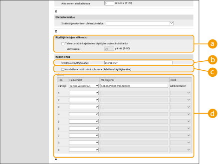 [Rooli] | Valitse oikeudet jotka soveltuvat käyttäjiin, jotka täyttävät ehdon. |