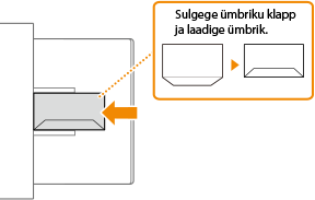 Asetage ümbrikud paberisahtlisse või universaalsalve. Ümbrike printimisel siluge paberiummistuste vältimiseks enne nende laadimist kõik kortsud. Kontrollige ka ümbrike paigutussuunda ja seda, kumb pool on üleval.