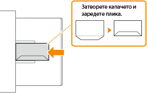 Този раздел описва как да зареждате пликове с правилна ориентация, както и процедурите, които трябва да изпълните, за да заредите пликовете. За описание на общата процедура за зареждане на пликове в многофункционалната тава вижте Основни операции за зареждане на хартия. |