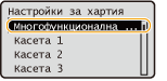 Можете да регистрирате настройки за хартия по подразбиране за многофункционалната тава. Регистрирането на настройки по подразбиране може да ви спести усилия, ако трябва да задавате настройки всеки път, когато зареждате хартия в многофункционалната тава.